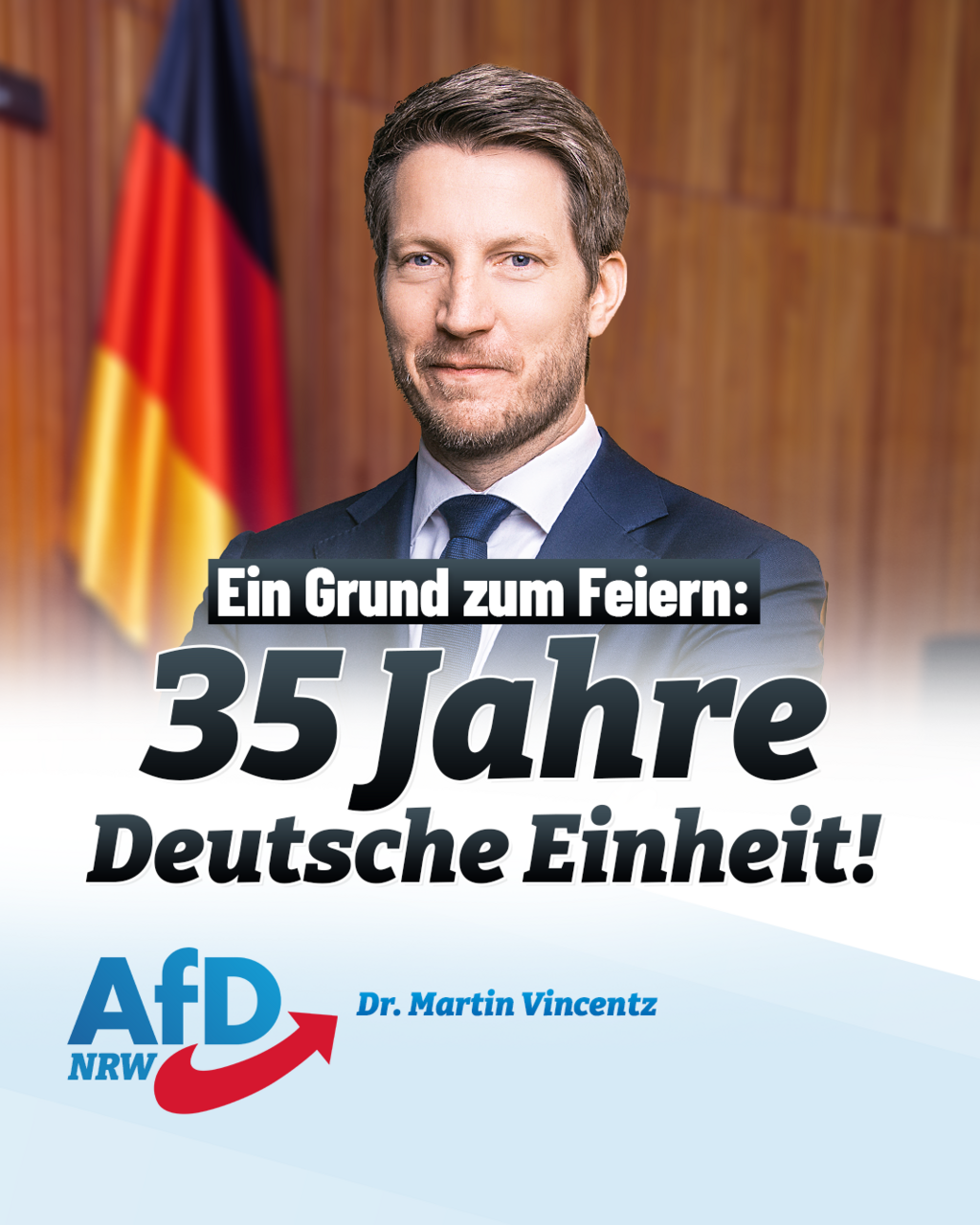 „Die Wiedervereinigung ist für Millionen ein Feiertag wie kein zweiter“, sagt Dr. Martin Vincentz, Landessprecher der AfD NRW. „Viele glaubten damals nicht mehr daran, dass die seit Jahrzehnten geteilte Heimat eines Tages wieder eins werden könnte. Als sich nach dem Mauerfall Deutsche aus [...]