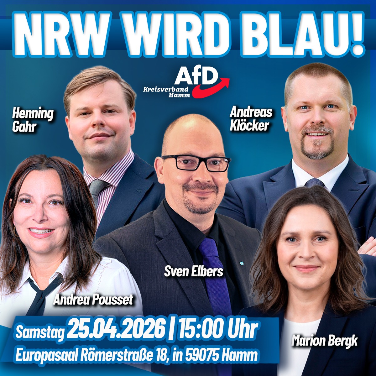 NRW WIRD BLAU – AfD -Kreisverband-Hamm lädt ein am 25.04.2026 ab 15 Uhr Europasaal Römerstr.18 59075 Hamm Im Rahmen unseres Thementags „NRW wird blau“ stellen [...]